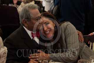CIUDAD DE MÉXICO, 15ENERO2018.- Con motivo del Día del Compositor, celebración que conmemora la fundación de la Sociedad de Autores y Compositores, se realizó una comida y ambientada con música en vivo para los integrantes del gremio. En la imagen, Armando Manzanero, presidente de la Sociedad de Autores y Compositores de México (SACM), y su esposa Laura Elena Villa. FOTO: GALO CAÑAS /CUARTOSCURO.COM