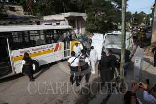 CAMPECHE, CAMPECHE, 16ENERO2018.- Un transporte de la ruta "Paso de las Águilas" se quedó sin frenos e impactó y arrastró a una camioneta Chevrolet, por más de 30 metros hasta chocar contra dos motocicletas estacionadas y un predio particular. En el interior del vehículo se encontraba una persona del sexo masculino quien murió prensado. Al lugar llegaron agentes ministeriales, elemento de la policía estatal preventiva, bomberos y la Semefo. FOTO: MARTÍN ZETINA /CUARTOSCURO.COM