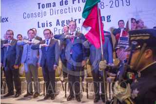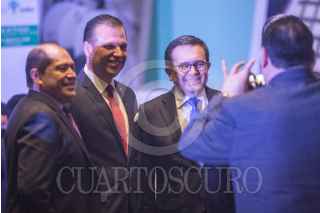 CIUDAD DE MÉXICO, 16ENERO2018.- Idelfonso Guajardo, secretario de Economía, y Aristóteles Sandoval, encabezaron la toma de protesta de Luis Aguirre como el nuevo presidente de la mesa directiva de la Industria Maquiladora y Manufacturera de Exportaciones. FOTO: TERCERO DÍAZ / CUARTOSCURO.COM