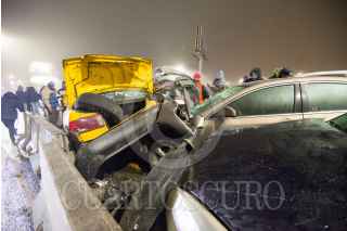 SALTILLO, COAHUILA, 17ENERO2018.- Las bajas temperaturas causaron una carambola donde 43 autos estuvieron involucrados en el puente de Luis Echeverría. FOTO: CUARTOSCURO.COM