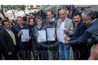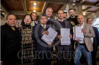 CIUDAD DE MÉXICO, 18ENERO2018.- Germán Ernesto Ralis Cumplido, de Movimiento Ciudadano, Francisco Martínez Neri, Jesús Zambrano, y Cristina Gaytan del PRD, entre otros funcionarios públicos de diversos partidos políticos, interpusieron un recurso de acción por inconstitucionalidad en contra de la Ley de Seguridad interior. FOTO: TERCERO DÍAZ /CUARTOSCURO.COM