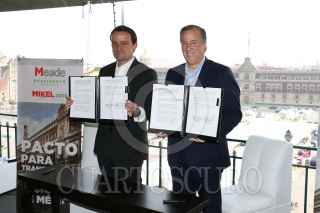 CIUDAD DE MÉXICO, 18ENERO2018.- Jose Antonio Meade Kuribreña, precandidato del PRI a la presidencia de la República, acompañado de Mikel Arriola, precandidato del PRI a la gubernatura de la Ciudad de México, durante la firma del pacto para transformar la Ciudad de Mexico realizado en un hotel en el centro de la capital. FOTO: SAÚL LÓPEZ /CUARTOSCURO.COM