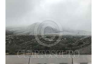 NUEVO LEÓN, 18ENERO2018.- Debido a una intensa masa de aire polar que impulsa al frente frío número 23, la carretera Saltillo-Monterrey se ha visto afectada con la caída de agua nieve lo que provoca el tránsito lento de los automóviles qué transita por esa vía federal. FOTO: ANA LUISA ANZA / CUARTOSCURO.COM