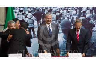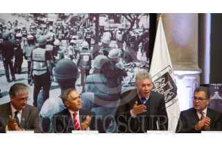 CIUDAD DE MÉXICO, 19ENERO2018.- Miguel Angel Mancera y David Penchyna, encabezaron la reunión con el reporte de lo realizado por el terremoto del 19 de septiembre que sacudio a la Ciudad de México. El evento tuvo lugar en el Antiguo Ayuntamiento capitalino. FOTO: VICTORIA VALTIERRA /CUARTOSCURO.COM