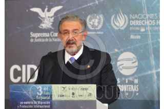 CIUDAD DE MÉXICO, 19ENERO2018.- El Ministro Luis María Aguilar Morales, Presidente de la Suprema Corte de Justicia de la Nación (SCJN) y del Consejo de la Judicatura Federal (CJF) durante la inauguración del 3er Foro Regional en Materia de Migración y Protección Internacional, efectuada en el Área de Murales del Alto Tribunal. FOTO: SCJN /CUARTOSCURO.COM