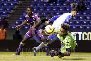 PUEBLA, PUEBLA, 19ENERO2018.- El portero del Veracruz; Pedro Gallese evita la anotación durante jugada del partido correspondiente a la jornada 3 del clausura 2018 de la Liga MX celebrado en el estadio Cuauhtémoc, con marcador final 2-0 a favor de los locales. FOTO: HILDA RÍOS/CUARTOSCURO.COM