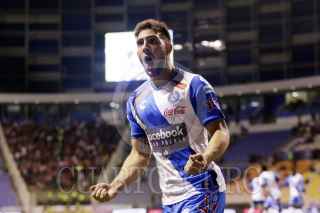 PUEBLA, PUEBLA, 19ENERO2018.- El jugador del Club Puebla Lucas Cavallini festeja el gol anotado ante el Veracruz, correspondiente a la jornada 3 del clausura 2018 de la Liga MX celebrado en el estadio Cuauhtémoc, con marcador final 2-0 a favor de los locales. FOTO: HILDA RÍOS/CUARTOSCURO.COM