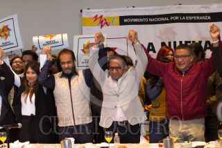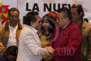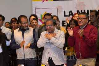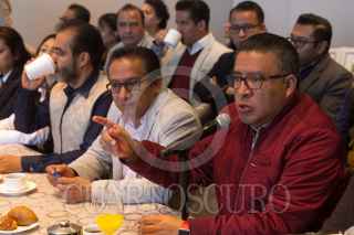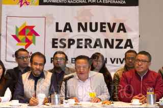 CIUDAD DE MÉXICO, 21ENERO2018.- Osmar León Aquino, dirigente del Movimiento Vida Digna, Horacio Duarte, líder de Morena en el Estado de México, durante el anuncio en el cual León Aquino dio a conocer que renuncia al PRD para sumarse a Morena y así poder ganarle al PRI en el próximo proceso electoral, señalo que con él se van 21 mil integrantes de su movimiento. FOTO: MOISÉS PABLO /CUARTOSCURO.COM