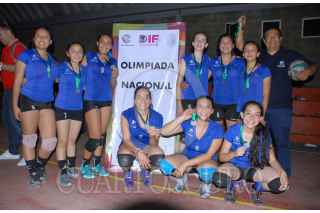 CHILPANCINGO, GUERRERO, 21ENERO2018.- Las jugadoras de Voleibol del equipo (ESFO) que representaron a Taxco ganaron la olimpiada nacional en su etapa estatal, venciendo al equipo de Acapulco “25 – 18” en el segundo set y calificaron para el regional en la categoría 2002 – 2003, y el de la categoría 2004 – 2005. FOTO: JOSÉ I. HERNÁNDEZ /CUARTOSCURO.COM