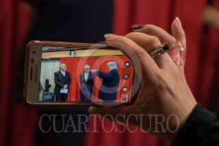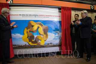 CIUDAD DE MÉXICO, 23ENERO2018.- Jorge Gaviño, director del Sistema de Transporte Colectivo Metro y Enrique Carbajal "Sebastian", escultor mexicano, especialista en obras monumentales, develaron en la estación Barranca del Muerto del Metro, dos fotografías con esculturas del artista en los espacios para la publicidad. Esta muestra forma parte de los 50 años de trabajo del escultor y se exhibirá en 219 espacios de las líneas 3 y 7 del metro en las estaciones Tacubaya, Chapultepec, Zapata y Polanco, a la par se presenta en 12 espacios en las Terminales 1 y 2 del Aeropuerto Internacional de la Ciudad de México. FOTO: ADOLFO VLADIMIR /CUARTOSCURO.COM