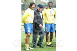 MEXICO, D.F. 20DICIEMBRE2004.- El delantero Cleber Mayer fue presentado como nuevo refuerzo del América para el próximo torneo del balonpie nacional en el lugar estuvo Manuel Lapuente, presidente del equipo. FOTO:Iván Stephens/CUARTOSCURO.COM