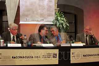 Leopoldo Zea, Carlos Pereda, Alejandro Rossi y Manuel Duran, durante el Coloquio Internacional que celebra los 50 años de la publicación de "El Laberinto de la Soledad", del desparecido Octavio Paz.FOTO: Carlo Navarro/CUARTOSCURO.COM