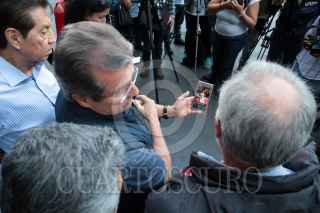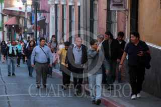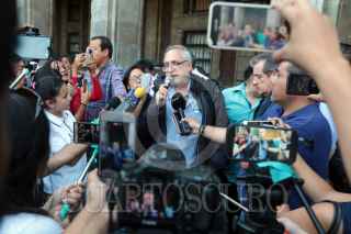 CUERNAVACA, MORELOS, 23ENERO2018.-Minutos antes de las 16:00 horas el ex rector de la Universidad Autónoma del Estado de Morelos, Alejandro Vera Jiménez fue detenido por agentes de la Fiscalía Anticorrupción, mientras comía en un restaurante del norte de la ciudad. El ex funcionario universitario enfrenta varios procesos judiciales. Miembros del Frente Amplio Progresista dieron una conferencia de prensa en el zócalo de la ciudad y denunciaron, según sus dichos, una desaparición forzada y secuestro, responsabilizan al gobernador, Graco Ramírez Abreu, de lo que pudiera pasarle. FOTO: MARGARITO PÉREZ RETANA /CUARTOSCURO.COM