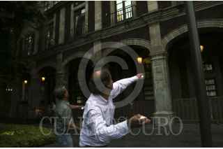 CUERNAVACA, MORELOS, 23ENERO2018.- Dagoberto Rivera, líder transportista y el activista social Gabriel Rivas, lanzan huevos en la fachada del Tribunal de Justicia y el Palacio de Gobierno en protesta por la detención del ex rector de la Universidad Autónoma del Estado de Morelos. FOTO:MARGARITO PÉREZ RETANA /CUARTOSCURO.COM