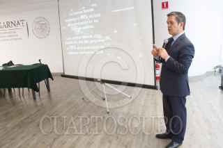 CIUDAD DE MÉXICO, 24ENERO2018.- Rodolfo Lacy, subsecretario de la Semarnat, encabezó la presentación del estudio para reducir emisiones contaminantes en plataformas de Petróleo y Gas en aguas de México. FOTO: VICTORIA VALTIERRA /CUARTOSCURO.COM