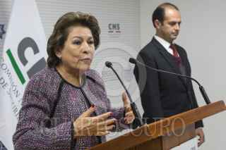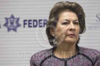 CIUDAD DE MÉXICO, 25ENERO2018.- Isabel Miranda de Wallace, de Alto al Secuestro, durante la conferencia de prensa que ofreció la Comisión Nacional de Seguridad donde presentaron ChecAuto MX, una aplicación de celular donde se puede revisar si un auto tiene reporte de robo. Dado que los secuestros se realizan casi en su mayoría en coches robados, de Wallace fue invitada a dicha presentación. FOTO: TERCERO DÍAZ /CUARTOSCURO.COM