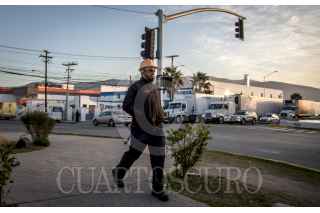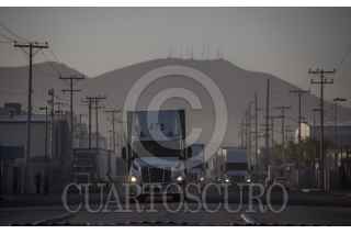 TIJUANA BAJA CALIFORNIA, 26ENERO2018.- La zona industrial de Otay, registra un gran movimiento comercial en los primeros minutos del día. Miles de trabajadores se apresuran a llegar a las empresas maquiladoras a la par de los cientos de camiones carga que se dirigen a la aduana de exportación para internarse a Estados Unidos. FOTO: CHRISTIAN SERNA /CUARTOSCURO.COM