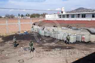 SAN MARTÍN TEXMELUCAN, PUEBLA, 26ENERO2018.- Elementos del ejército mexicano en coordinación con la policía estatal, lograron el aseguramiento de 12 vehículos y 74 contenedores de 1000 litros de hidrocarburo en un terreno de la colonia La Purísima del municipio de San Martín Texmelucan. FOTO: ESPECIAL/CUARTOSCURO.COM