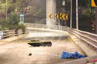 CIUDAD DE MÉXICO., 27ENERO2018.- Un motociclista, perdió la vida y uno más resultó lesionado, tras derrapar cuando circulaban con su motocicleta, en la incorporación de avenida Muyuguarda a Periférico en la colonia Residencial Coapa. El piso mojado y el exceso de velocidad, la aparente causa de dicho accidente. FOTO: LUIS CARBAYO /CUARTOSCURO.COM