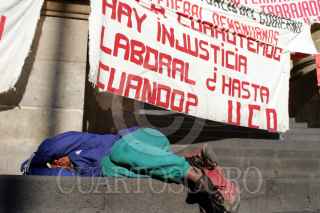 México, D.F., 28DICIEMBRE2004.- Un fatigado protestante descansa en las escaleras de la Asamblea Legislativa. FOTO: Moisés Pablo/CUARTOSCURO.COM
