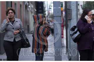 CIUDAD DE MÉXICO, 29ENERO2018.- Una mujer inhala un poco de solvente sobre la calle Madero del Centro Histórico, a su alrededor dos mujeres sin inmutarse del acto hablan por teléfono. FOTO: GALO CAÑAS /CUARTOSCURO.COM