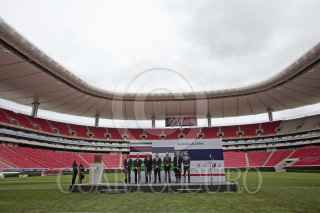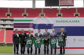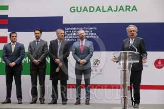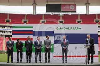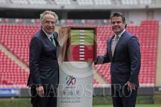 ZAPOPAN, JALISCO, 29ENERO2017.- Jorge Aristóteles Sandoval Díaz Gobernador del Estado, Decio de María Presidente de la Federación Mexicana de Futbol y Jorge Vergara Dueño del Club Guadalajara, encabezaron este medio día en el Estadio Akron el protocolo de entrega de convenios de la candidatura conjunta para ser sede de la copa del mundo FIFA 2026 Canadá, México y Estados Unidos. FOTO: FERNANDO CARRANZA GARCIA / CUARTOSCURO.COM