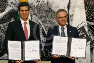CIUDAD DE MÉXICO, 29ENERO2018.- Héctor Marcos Díaz Santana, Fiscal Especializado para la Atención de Delitos Electorales, firmó dos convenios de colaboración y blindaje electoral con el Gobierno de la Ciudad de México, encabezado por Miguel Ángel Mancera Espinosa. FOTO: CUARTOSCURO.COM