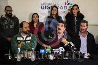 AGUASCALIENTES, AGS., 29ENERO2018.- Javier Corral Jurado, gobernador del estado de Chihuahua, como parte de las actividades de la Caravana por la Dignidad, ofreció conferencia de prensa para dar a conocer sobre el posible traslado del hoy detenido Alejandro Gutiérrez -investigado por presunto desvio de recursos- a un penal federal. FOTO: CYNTHIA ANDRADE / CUARTOSCURO.COM