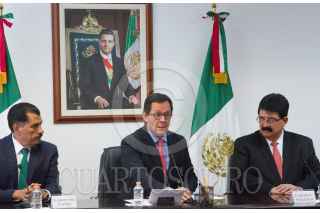 CIUDAD DE MÉXICO, 31ENERO2018.- Roberto Campa Cifrián, titular de la Secretaría del Trabajo y Previsión Social, realizo nombramientos en la dependencia. Florentino Castro y Carlos Siqueiros, le acompañan. FOTO: VICTORIA VALTIERRA /CUARTOSCURO.COM