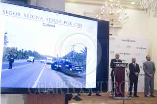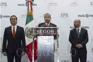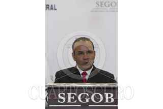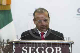 CIUDAD DE MÉXICO, 01FEBRERO2018.- Alfonso Navarrete Prida, secretario de Gobernación, encabezó una conferencia de prensa, lo acompañaron Renato Sales, Comisionado Nacional de Seguridad; Alberto Elías Beltrán, subprocurador jurídico de Asuntos Internacionales y encargado de despacho de al PGR, y Manelich Castilla Craviotto, comisionado General de la Policía Federal. El encargado de la política interior del país ofreció un balance sobre los resultados del operativo encabezado por las fuerzas federales en varios estados del país, puntualizó que a una semana de su aplicación en los mismos no se han reportado homicidios relacionados con el crimen organizado. FOTO: MOISÉS PABLO /CUARTOSCURO.COM
