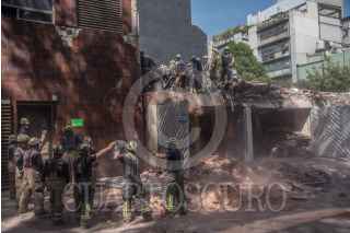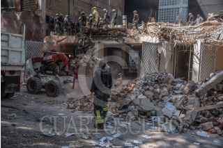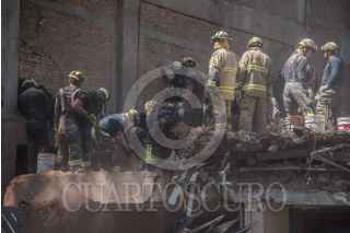 CIUDAD DE MÉXICO, 02FEBRERO2018.- A más de cuatro meses del sismo registrado en la capital del país, se reaunudaron las labores de remoción de escombros del edificio ubicado en esquina de Laredo y Ámsterdam. En el lugar bomberos de la Ciudad de México, encabezan los trabajos. FOTO: MARIO JASSO /CUARTOSCURO.COM