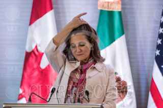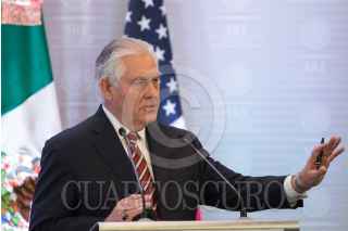 CIUDAD DE MÉXICO, 02FEBRERO2018.- Chrystia Freeland, primer ministra de asuntos exteriores de Canadá, Luis Vedegaray, secretario de Relaciones Exteriores y Rex Tillerson, secretario de Estado de los Estados Unidos, durante la conferencia de prensa para hablar sobre los temas abordados entre los tres países durante su visita. FOTO: ADOLFO VLADIMIR /CUARTOSCURO.COM