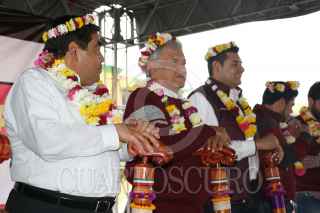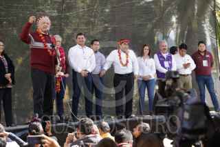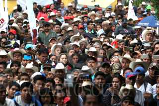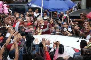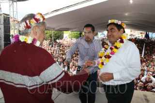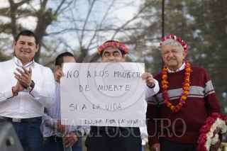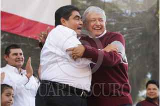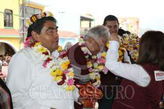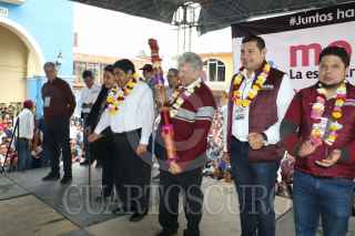 XICOTEPEC, PUEBLA, 02FEBRERO2018.- Andrés Manuel López Obrador, precandidato de MORENA a la presidencia de la república, acompañado del precandidato a la gubernatura de estado de Puebla, Miguel Barbosa, visitaron la sierra norte del estado, donde se reunieron con militantes de su partido y dieron a conocer su propuesta de gobierno. FOTO: SAÚL LÓPEZ /CUARTOSCURO.COM