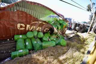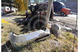 OCOYOACAC, ESTADO DE MÉXICO, 02FEBRERO2018.- El choque entre dos trailers y una camioneta de carga provocó caos vehicular en la carretera México-Toluca, permanecieron cerrados dos carriles mientras se realizaban los trabajos para retirar los vehículos accidentados, no se registraron heridos graves. FOTO: ARTEMIO GUERRA BAZ /CUARTOSCURO.COM