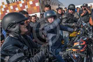 NEZAHUALCÓYOTL, ESTADO DE MÉXICO, 03FEBRERO2018.- Ricardo Anaya, precandidato a la presidencia la Coalición “Por México al Frente”, participó en una rodada motociclista que partió del Centro Deportivo Ciudad Jardín al monumento del “Coyote” en Nezahualcóyotl. Anaya, comentó que la construcción del nuevo Aeropuerto de la Ciudad de México es indispensable, pero debe llevarse a cabo con transparencia. El precandidato, estuvo acompañado del perredista Juan Zepeda. FOTO: MARIO JASSO /CUARTOSCURO.COM