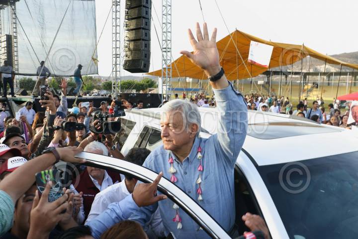 IZUCAR DE MATAMOROS, PUEBLA 02FEBRERO2018.- Andrés Manuel López Obrador, precandidato a la presidencia de la república del Movimiento de Regeneración Nacional visitó la región de la mixteca poblana en compañía del precandidato a la gubernatura del estado Miguel Barbosa Huerta, donde dieron a conocer su propuesta de gobierno ante miles de militantes de MORENA en la unidad deportiva Mariano Matamoros. FOTO: SAÚL LÓPEZ /CUARTOSCURO.COM
