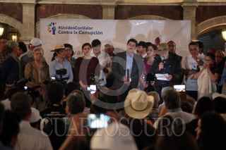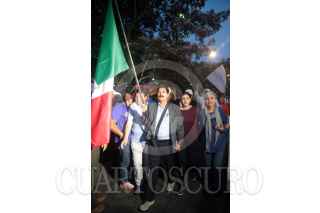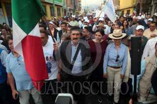 CUERNAVACA, MORELOS, 03FEBRERO2018.- Javier Corral, gobernador de Chihuahua, abraza a el poeta Javier Sicilia, durante el mitin de la “Caravana por la Dignidad Unidos con Valor“. La movilización llegara el próximo domingo a la Ciudad de México. FOTO: MARGARITO PÉREZ RETANA /CUARTOSCURO.COM