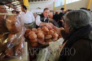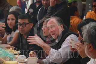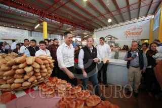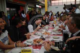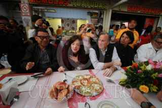 OAXACA, OAXACA, 04FEBRERO2018.- El precandidato ala presidencia de la República por la coalición "Todos por México", José Antonio Meade y su esposa Juana Cuevas realizan este domingo una gira de trabajo por el estado de Oaxaca, durante su recorrido visitó el mercado de La Merced, donde desayunó junto con el gobernador, Alejandro Murat y diversos funcionarios públicos y artistas plásticos. Meade únicamente tomó un chocolate de leche con pan y un jugo. FOTO: ARTURO PÉREZ ALFONSO/ CUARTOSCURO.COM