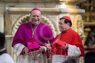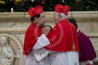 CIUDAD DE MÉXICO, 05FEBRERO2018.- El cardenal Norberto Rivera, ex arzobispo primado de México, y Carlos Aguiar Retes, nuevo arzobispo primado de México, durante su presentación en el cargo en la Catedral Metropolitana. FOTO: GALO CAÑAS /CUARTOSCURO.COM