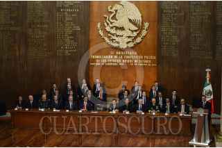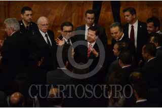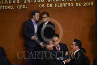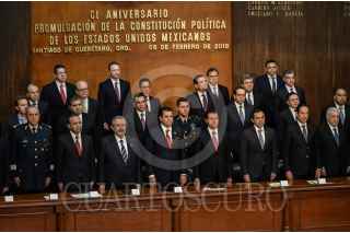 QUERÉTARO, QUERÉTARO, 05FEBRERO2018.- El Presidente de México Enrique Peña Nieto encabezó la ceremonia del 101 Aniversario de la Promulgación de la Constitución Mexicana de 1917, en el Teatro de la República. En la imagen lo acompañan los secretarios de estado José Narro, Ildefonso Guajardo, y Pedro Joaquín Coldwell. FOTO: MIKEL AGUILAR /CUARTOSCURO.COM