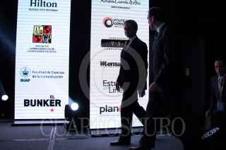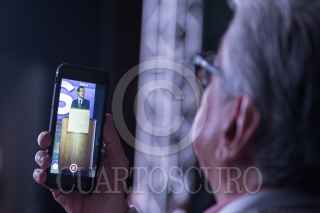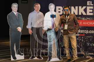 CIUDAD DE MÉXICO, 06FEBRERO2018.- Un hombre se hace una "selfie" junto a las imágenes de Jaime Rodríguez Calderón "El Bronco", Ricardo Anaya y José Antonio Meade, en un hotel de centro histórico. FOTO: ADOLFO VLADIMIR /CUARTOSCURO.COM