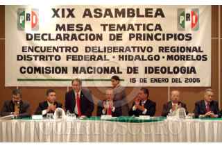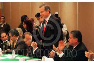 MEXICO, D.F. 15ENERO2005.- Manuel Ángel Nuñez Soto, gobernador de Hidalgo y presidente de la XIX Asamblea de la Comisión de Ideología del PRI, en la reunión que sostuvieron con integrantes del partido. FOTO: Iván Stephens/CUARTOSCURO.COM