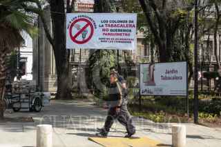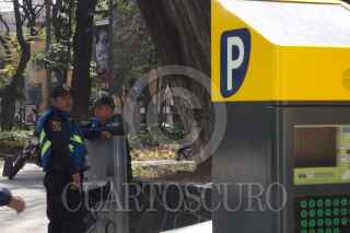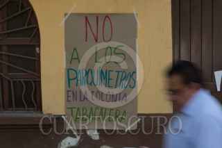 CIUDAD DE MÉXICO, 06FEBRERO2018.- Continúa la presencia de elementos policiales en las inmediaciones de la colonia tabacalera, para la instalación de parquímetros. Los colonos se han manifestado con la colocación de mantas y pancartas donde expresan su rechazó a la colocación de dichos aparatos. FOTO: GALO CAÑAS /CUARTOSCURO.COM