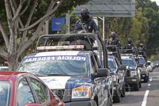 GUADALAJARA, JALISCO, 06FEBRERO2017.- En días pasados el titular de la Secretaria de Gobernación Alfonso Navarrete Prida, anuncio reforzar la seguridad en diferentes puntos del territorio mexicano y desde finales de enero se pudo constatar la llegada de elementos de la Policía Federal (PF) a la ciudad, hoy se pudo observar en las confluencias de la Glorieta de la Minerva un convoy de elementos federales llegando a la perla Tapatía. FOTO: FERNANDO CARRANZA GARCIA / CUARTOSCURO.COM