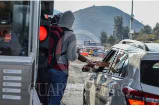 CHILPANCINGO, GUERRERO, 07FEBRERO2018.- Alumnos de la normal rural Raúl Isidro Burgos de Ayotzinapa, desde las siete de la mañana tomaron el control de la Caseta de Pablo de la autopista del Sol y dieron paso a los automovilistas a cambio de una cooperación. FOTO: JOSÉ I. HERNÁNDEZ / CUARTOSCURO.COM