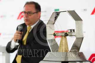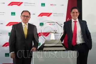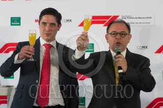 CIUDAD DE MÉXICO, 08FEBRERO2018.- Rodrigo Sánchez, director general de mercadotecnia y relaciones pública del Gran Premio de México Fórmula 1, y Federico González Compeán, director general del GP México F1, ofrecieron una conferencia de prensa en la cual hablaron de los detalles de esta competición programada para el mes de noviembre, también mostraron el trofeo que acredita al Gran Premio México, por tercer año consecutivo, como el mejor evento organizado de la Fórmula 1. FOTO: MOISÉS PABLO /CUARTOSCURO.COM