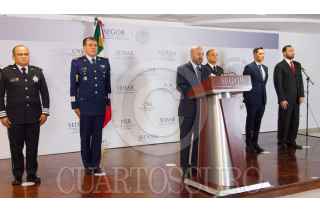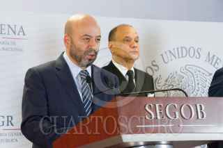 CIUDAD DE MÉXICO, 09FEBRERO2018.- Renato Sales, Comisionado Nacional de Seguridad acompañado de miembros de la Sedena, Marina y de la Policía Federal en la secretaria de Gobernación, informo sobre la captura del Narcotraficante José María Guízar Valencia (a) Z-43, que se efectuo ayer en la Ciudad de México. FOTO: VICTORIA VALTIERRA /CUARTOSCURO.COM
