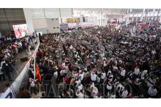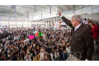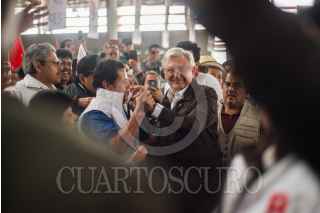 ZACATECAS, ZAC., 10FEBRERO2018.- Andrés Manuel López Obrador, precandidato por la coalición "Juntos Haremos Historia" por los partidos Morena, Encuentro Social y del Trabajo; sostuvo un encuentro con militantes y simpatizantes a su candidatura presidencial rumbo a las elecciones de 2018. Durante el evento el magisterio del estado le dió su respaldo rumbo a la contienda electoral. FOTO: MISAEL VALTIERRA / CUARTOSCURO.COM