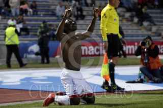 PUEBLA, PUEBLA, 10FEBRERO2018.- El jugador Julián Quiñones festeja el gol anotado con Lobos BUAP ante los Rojinegros del Atlas con marcador final 2-1 a favor de los locales; correspondiente a la jornada 5 del torneo Clausura 2018 de la Liga MX celebrado en el estadio olímpico universitario. FOTO: HILDA RÍOS / CUARTOSCURO.COM