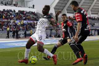PUEBLA, PUEBLA, 10FEBRERO2018.- El jugador Julián Quiñones y Luis Reyes, disputan el balón durante jugada del partido entre Lobos BUAP y los Rojinegros del Atlas con marcador final 2-1 a favor de los locales; correspondiente a la jornada 5 del torneo Clausura 2018 de la Liga MX celebrado en el estadio olímpico universitario. FOTO: HILDA RÍOS / CUARTOSCURO.COM